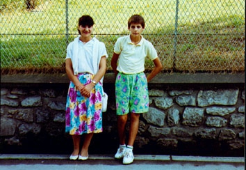 Maria et Alexandre (mon fils) en 1989 en bas du Chemin de croix à Lourdes